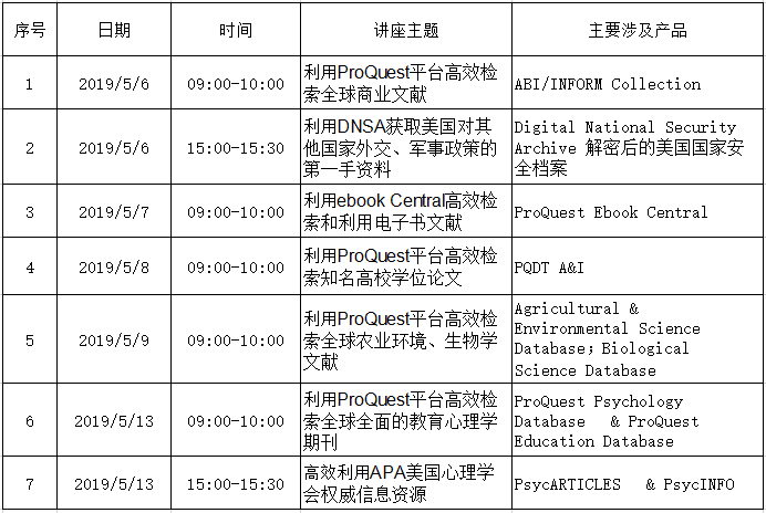 2019年5月网络培训课程安排如下(或关注ProQuest LibGuides):