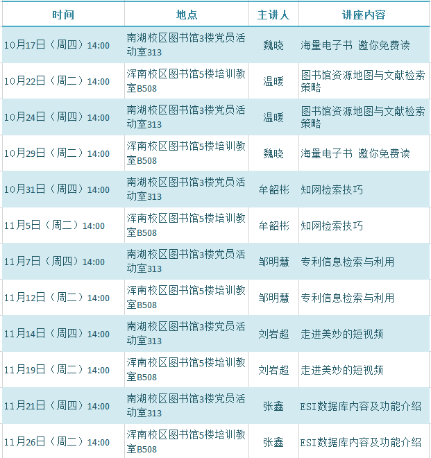 2019年秋季图书馆“每周一讲”信息素养系列讲座持续开课,精彩不停歇!同样需要你们的热情参与和支持!