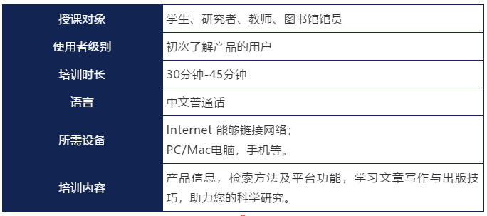 为了帮助广大用户了解并熟练掌握牛津各产品平台的使用,我们于本月安排了以下在线培训。内容主要包括牛津大学出版社出版的期刊及各学科在线产品资源介绍、平台使用技巧等。每期培训均为网络实时培训,没有IP限制。只需提前注册,即可参加。