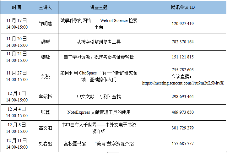 讲座时间:2020年11月17日—2020年12月11日,每周二、周五14:00-15:00
