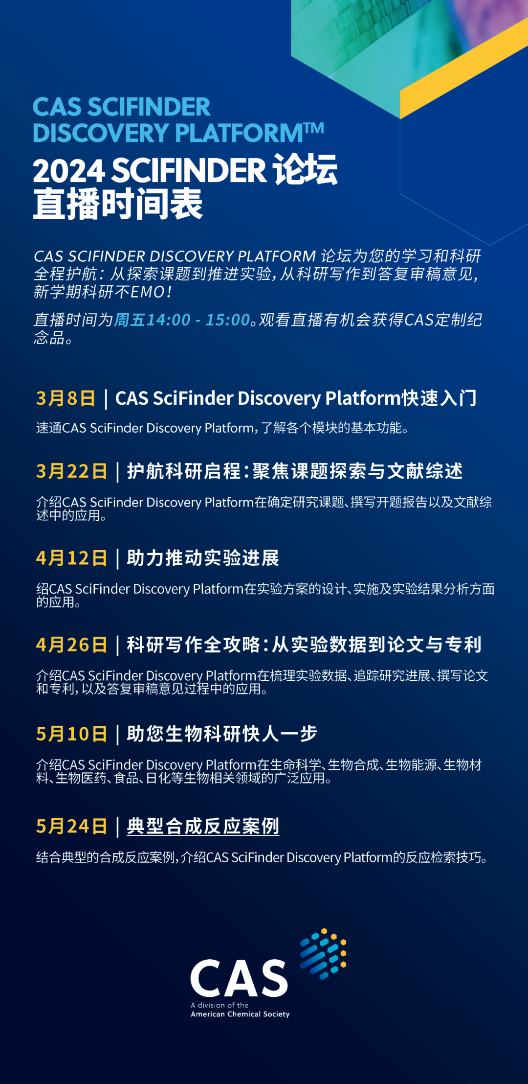 会议名称:CAS SciFinder Discovery Platform 护航科研启程:聚焦课题探索与文献综述