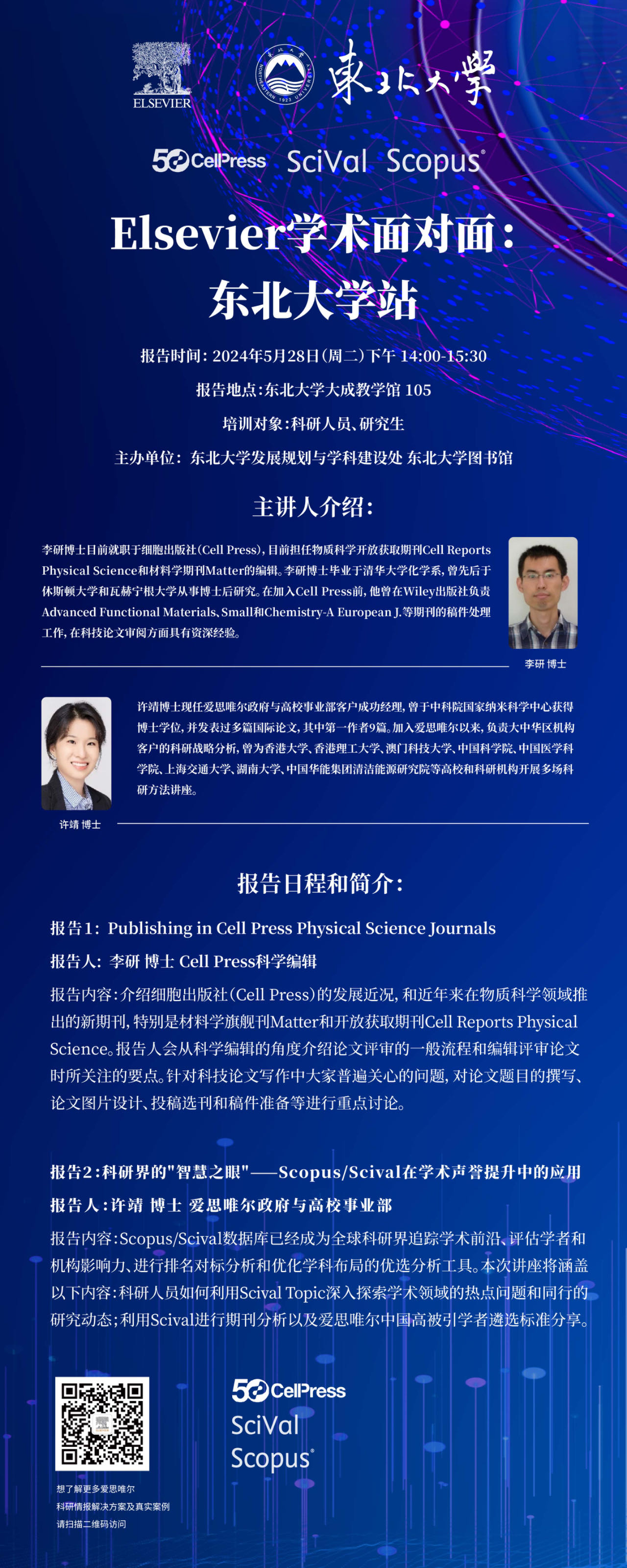 报告中会介绍细胞出版社(Cell Press)的发展近况,和近年来在物质科学领域推出的新期刊,特别是材料学旗舰刊Matter和开放获取期刊Cell Reports Physical Science。 报告人会从科学编辑的角度介绍论文评审的一般流程和编辑评审论文时所关注的要点。针对科技论文写作中大家普遍关心的问题,对论文题目的撰写、论文图片设计、投稿选刊和稿件准备等进行重点讨论。