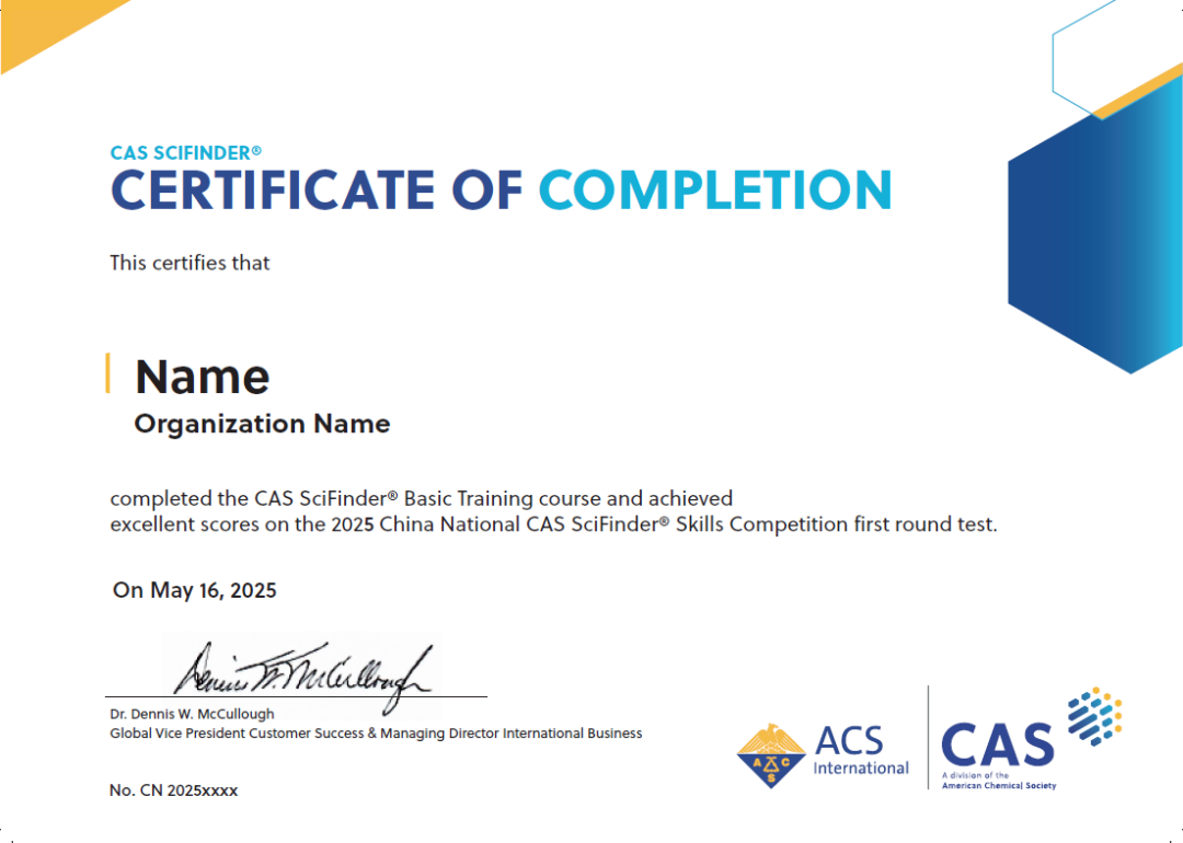 优秀学员:所有完成本阶段CAS SciFinder检索课程,且在线测试成绩达到优秀 (85分及以上) 的学员将获得CAS颁发的第一轮成绩优秀证书,ACS学生会员一年,前300名优秀学员将获赠CAS活力多巴胺礼盒。