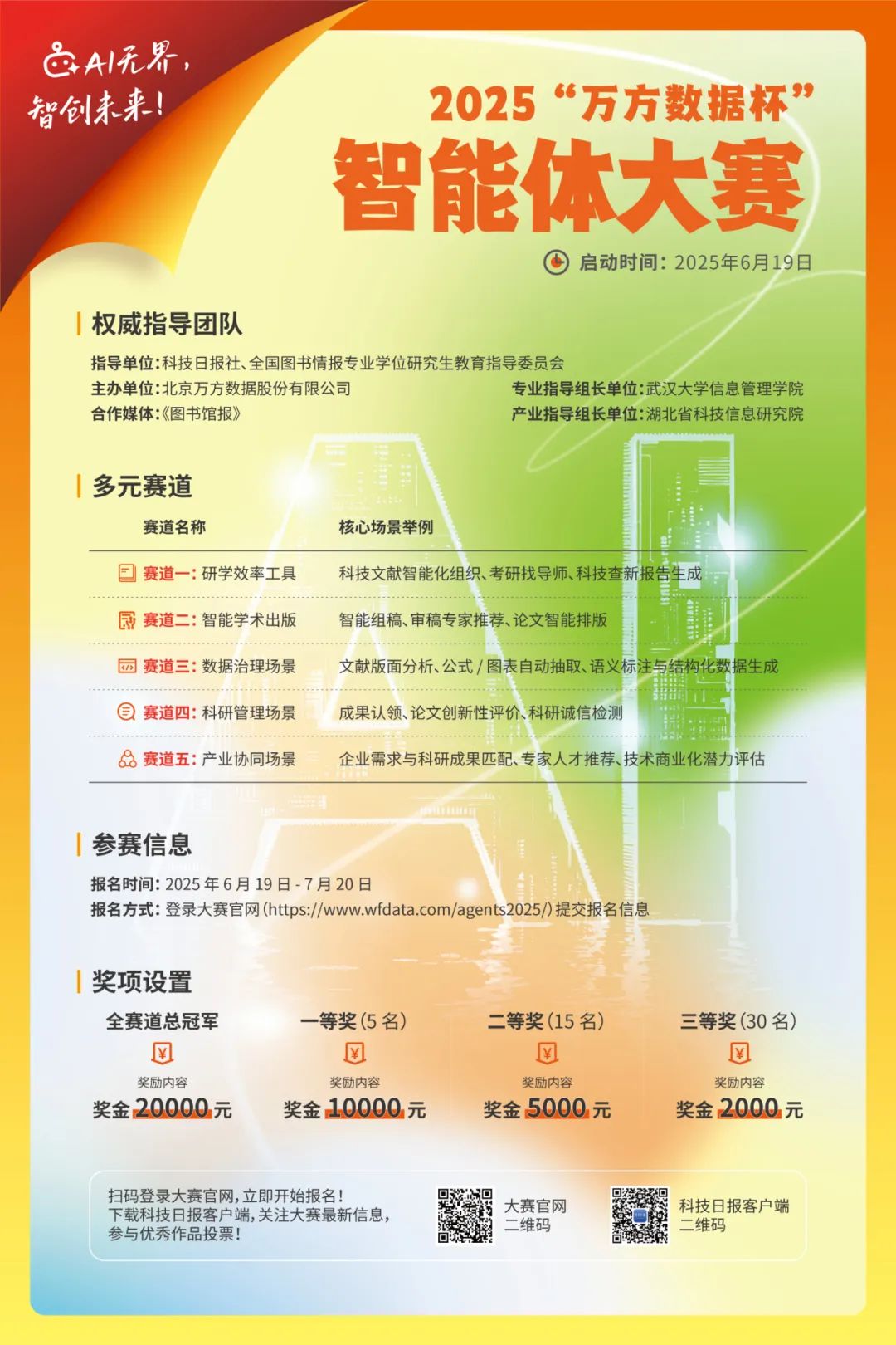 大赛面向全国高校师生个人或团队。请于2025年7月20日前,手机端扫码或PC端至赛事官网报名参赛。赛事官网及报名:https://www.wfdata.com/agents2025