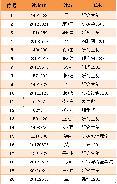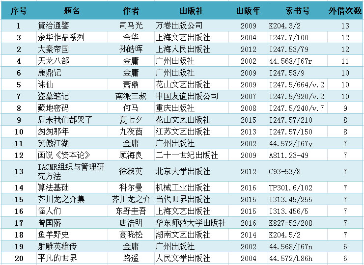 2016年4月读者借阅排行