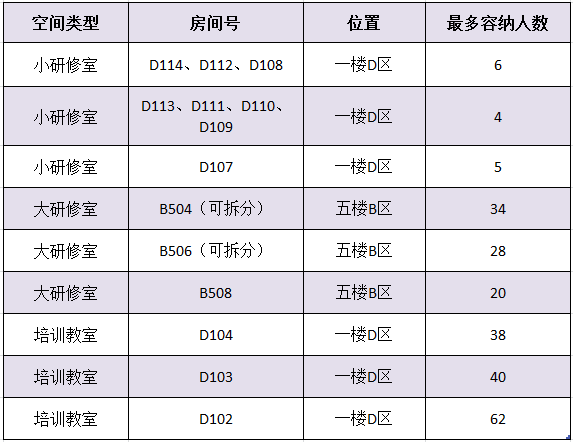 2.培训教室:仅限在校师生进行学术科研活动使用。