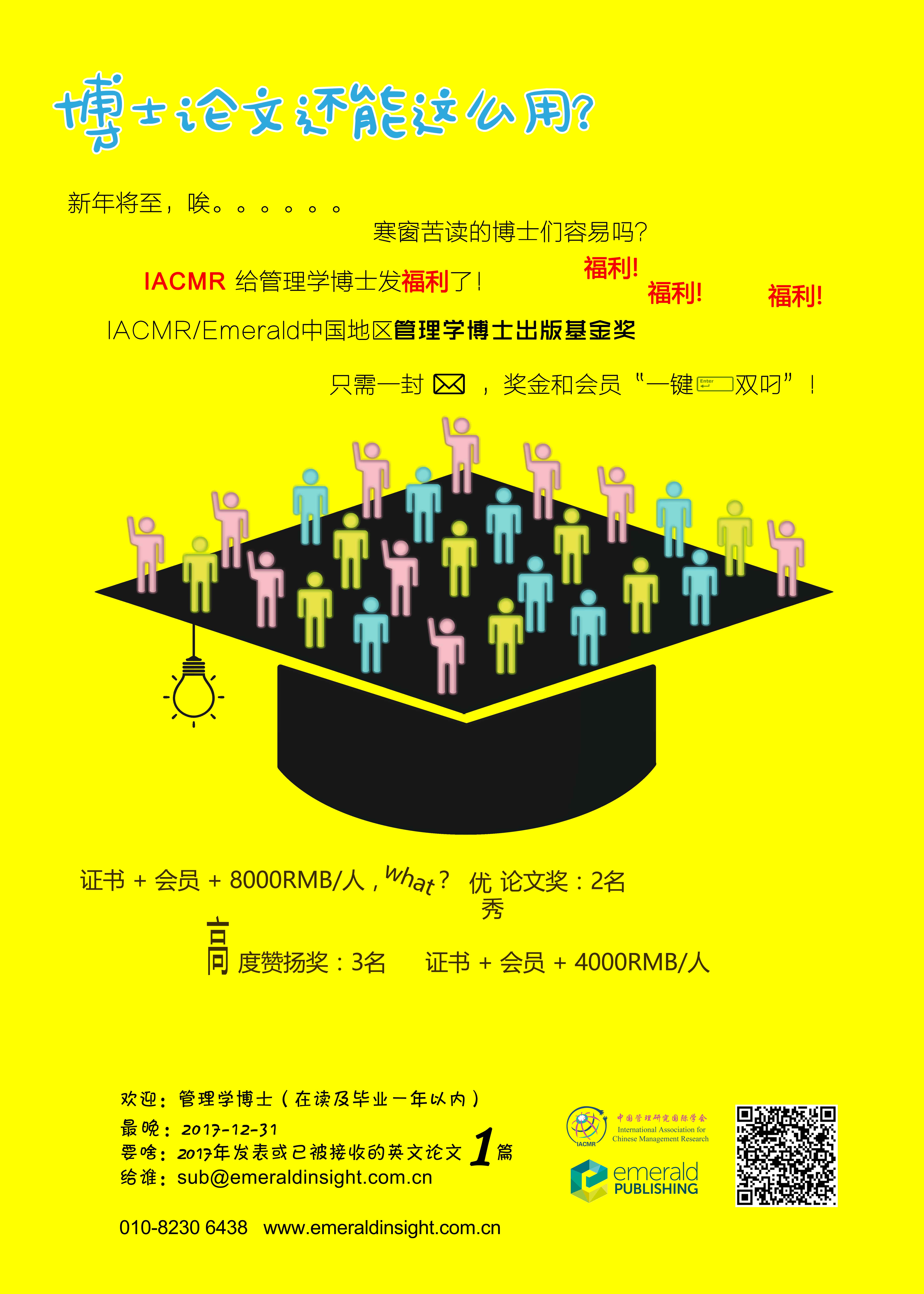 活动名称:2017-2019 IACMR/Emerald 中国地区博士出版基金奖 —好的研究从博士开始