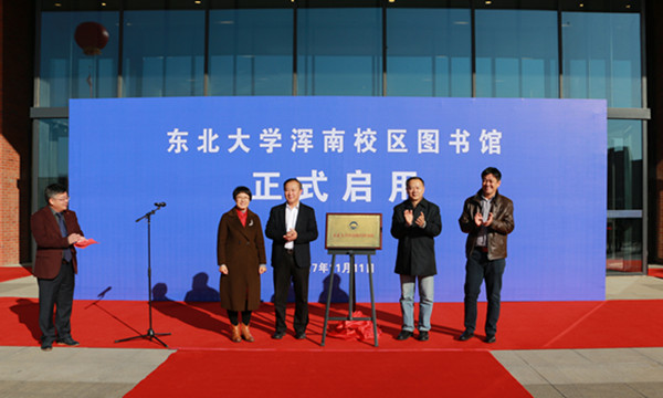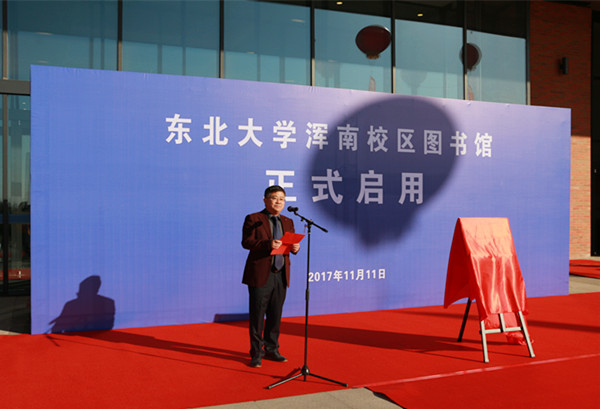 赵继、邓景康、刘宁宁和北京超星集团副总裁张龙岐先生共同为浑南校区图书馆揭牌。