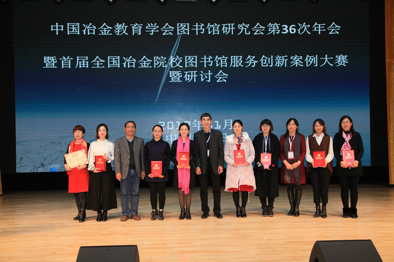中国冶金教育学会副秘书长孟江为获得“中国高等教育学会优秀学会工作者”的季淑娟馆长颁奖。各高校图书馆馆长为获得大赛一、二、三等奖案例颁奖。