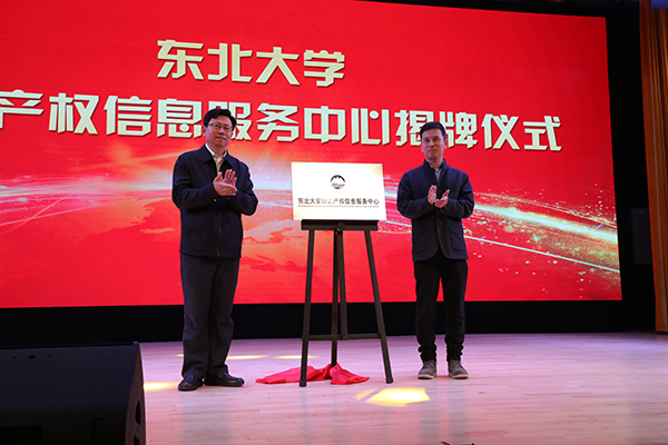 开幕式上,孙雷和薛军共同为东北大学知识产权信息服务中心揭牌。与会嘉宾共同按下启动按钮,东北大学机构知识库正式上线。