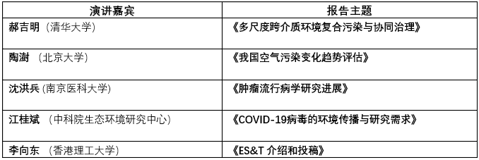 现代社会高速发展的同时也带来了诸多环境问题,从气候的变化到个人的吃穿住用行,环境与人类的健康息息相关。近年来,环境引起的健康问题逐渐成为科研和社会的焦点。本次会议由美国化学会环境旗舰刊Environmental Science & Technology (ES&T)副主编江桂斌院士担任大会主席,特别邀请三位环境与健康相关领域的顶尖科学家,包括清华大学郝吉明院士、ES&T副主编北京大学陶澍院士、南京医科大学沈洪兵院士。与大家一起聚焦环境污染与健康,探讨当下热点环境问题,包括大气污染健康危害与控制策略、肿瘤的分子流行病学研究以及COVID-19病毒的环境传播等。