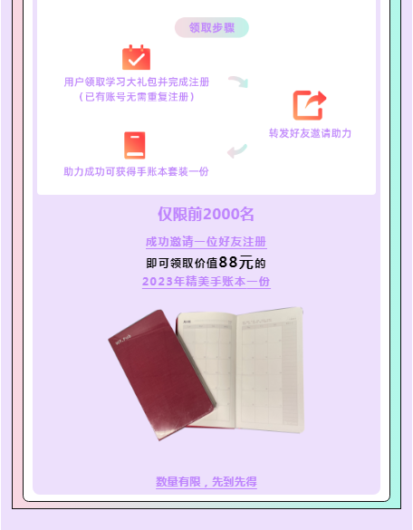 2.用户完成注册后并成功邀请到一位以上新用户即可领取实体奖品
