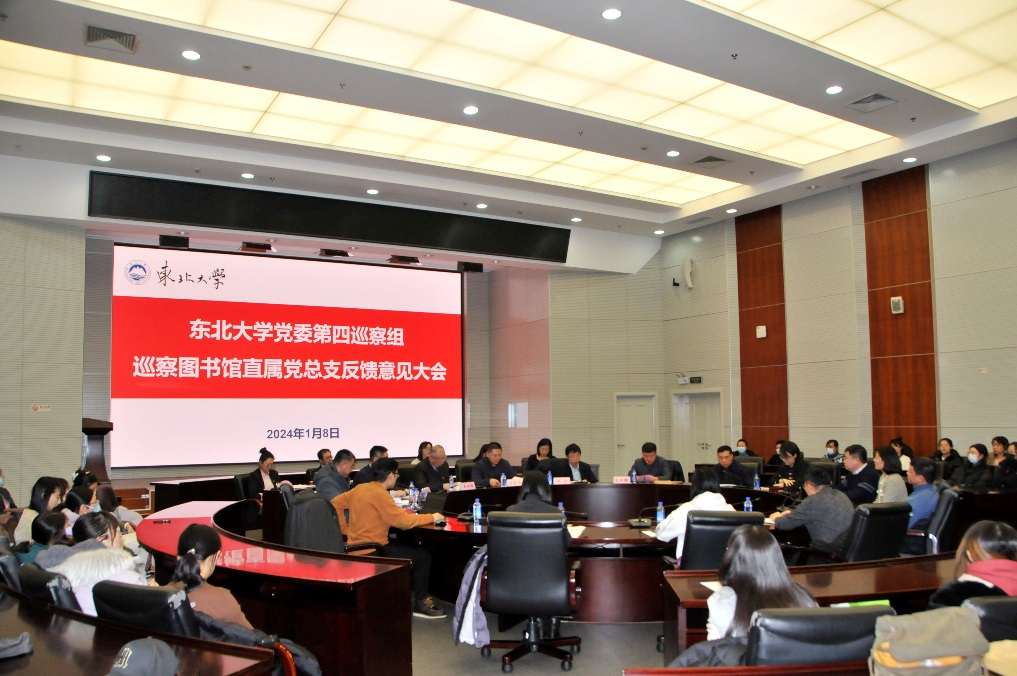 1月8日,东北大学党委第七轮巡察第四巡察组巡察图书馆反馈意见大会在主楼824室召开。校党委副书记、纪委书记吴豪伟,校党委常委、副校长王兴伟,校纪委副书记、校党委第七轮巡察第四巡察组组长、研究生院副院长吴政新及第四巡察组全体成员,党委组织部部长张玉宝,党委巡察工作办公室主任王剑,党委巡察工作办公室成员及校纪委办负责人出席会议。图书馆领导班子成员、职工代表共50余人参加会议。会议由图书馆馆长张国联主持。