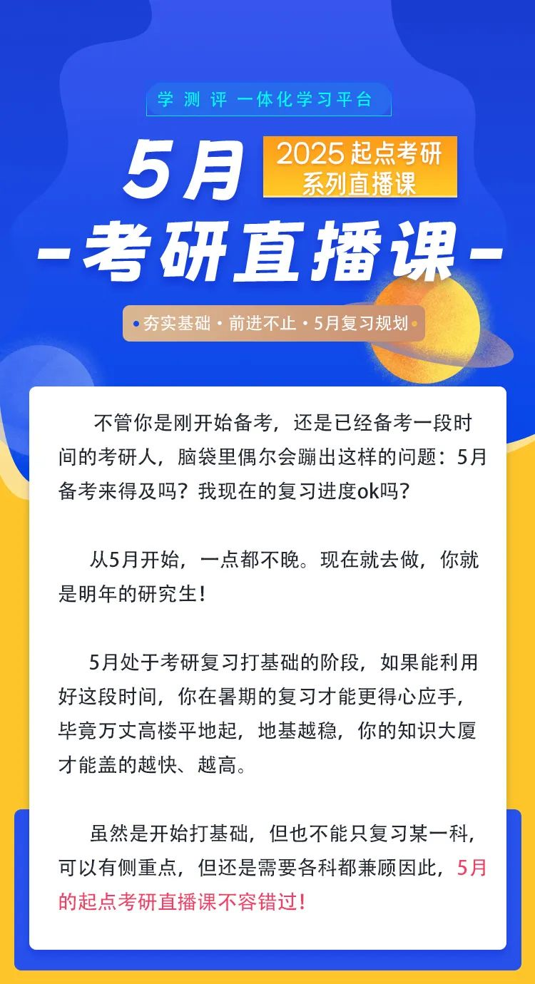 5月起点考研直播预告丨5月备考来得及吗?复习进度还OK吗?