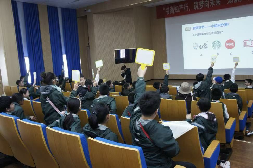 本次研学活动还设计了形式多样的互动环节,包括趣味竞答以及小组讨论分享等。同学们表现出极高的参与热情,争先恐后地举手发言,现场气氛十分热烈。在分享环节,同学们结合生活实例,踊跃分享了如何保护知识产权,包括要购买正版书籍以及传播他人作品时要先获得作者同意等。