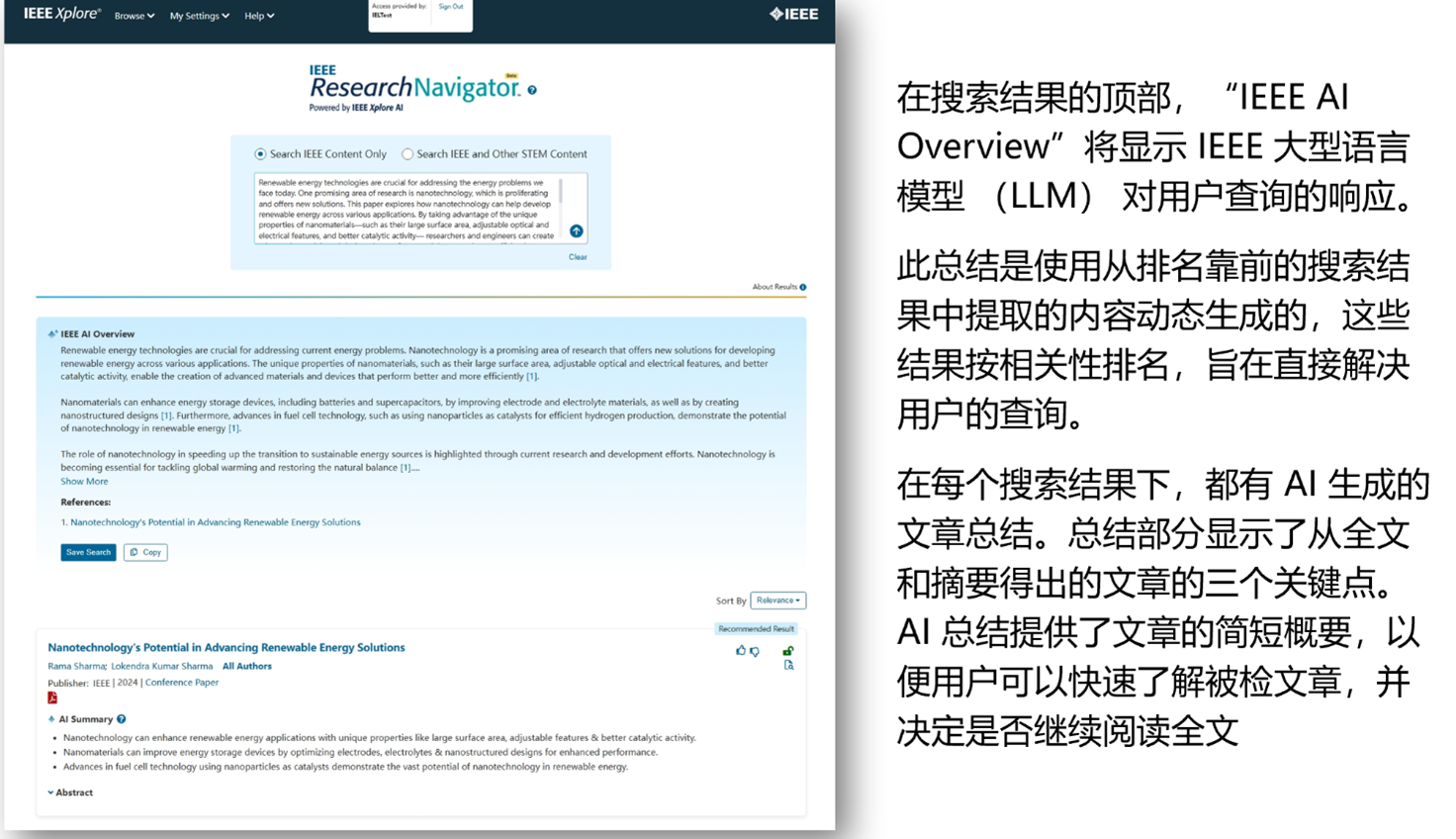 通过整合这些强大AI功能,IEEE Xplore将重塑研究体验,助力研究人员深化理解、快速吸收新观点,并加快研究进程。