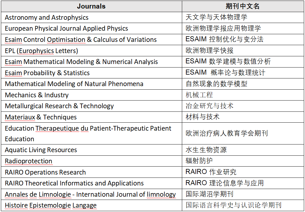 试用内容:法国EDP Sciences出版社全文期刊数据库