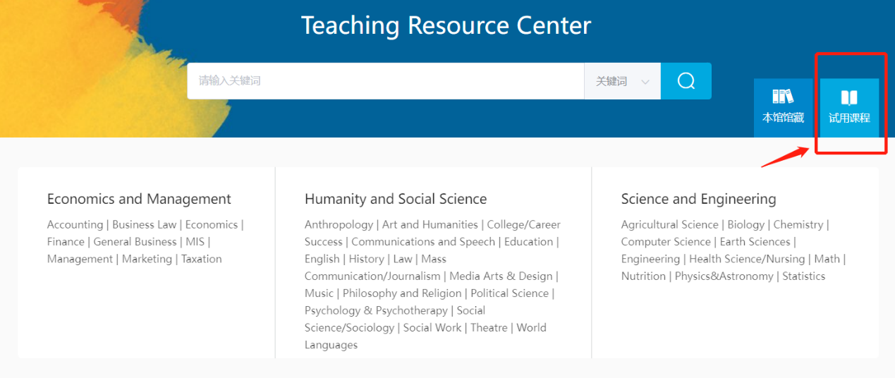 2. 点击“试用课程”,选择感兴趣的电子书等资源即可阅读。