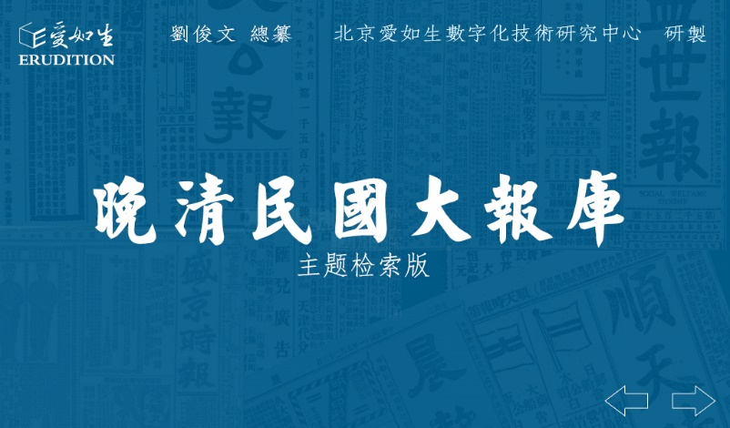 爱如生晚清民国大报库(主题检索版)是汇辑晚清民国期间著名大型报纸的巨型主题检索版数据库。由北京大学教授刘俊文总纂,北京爱如生数字化技术研究中心研制。