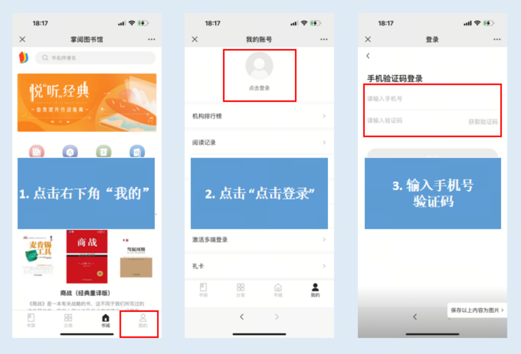 手机端扫码访问:进入到掌阅精选登录界面。输入“个人手机号+验证码”注册、登录成功后,即可开启阅读