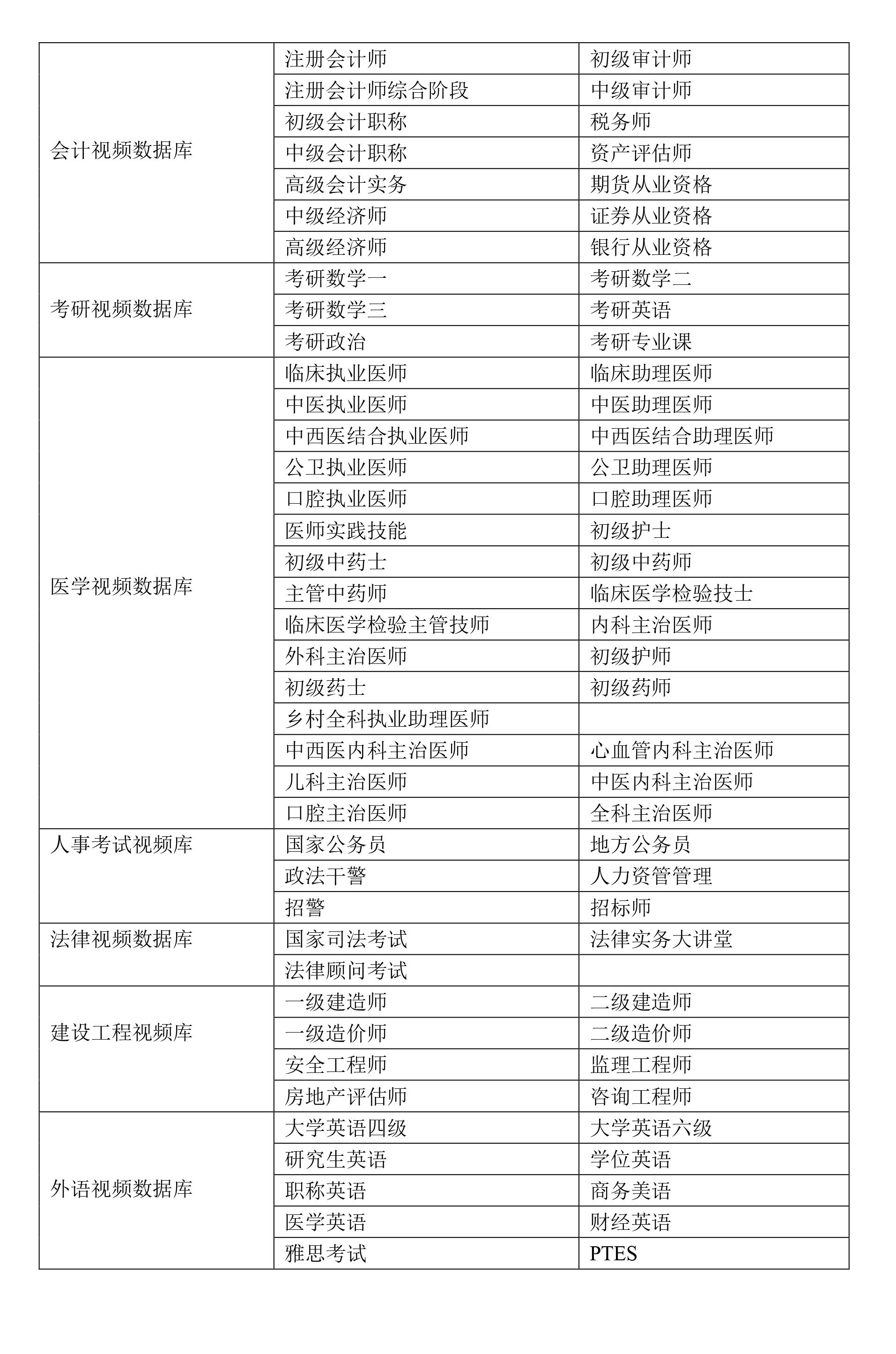访问地址: http://library.chnedu.com 试用期限:即日起至2025年06月30日 访问方式:在IP范围内免登陆使用 一、数据库简介: 学科领域:经济学、理学、工学、管理学、法学、艺术学、医学等学科;同时提供行业数据适用于其他院系。 为了助力高等院校师生的学习能力培养、专业能力提升与从业能力升华,正保集团(美国纽交所上市,股票代码DL)推出正保多媒体资源库系列产品,内容涵盖外语考试、研究生入学考试,会计考试、公务员考试、司法考试、医学考试、各类从业资格考试等两千多门网络课程,均由国内顶级名师讲授,帮助高校师生顺利通过各种考试、提升专业能力、增强就业实力。 作为国内最大的、内容更新最及时的学习库之一,“正保多媒体资源库”除了拥有师生所需的几乎全部辅导课程,还提供了互联网优质的全程互动服务平台,包括考试资讯中心、名师导学中心、全程咨询中心,国际领先呼叫中心,精品答疑中心、学员互动中心、测试模拟中心等多种增值服务,开创了以优质服务为产品的先河,是高校图书馆最符合读者需求的个性化多媒体学习中心。 正保远程多媒体库课程列表: