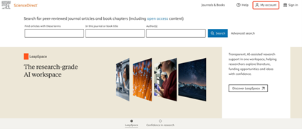 第一步:进入ScienceDirect主页(https://www.sciencedirect.com/),点击“My Account”。*
