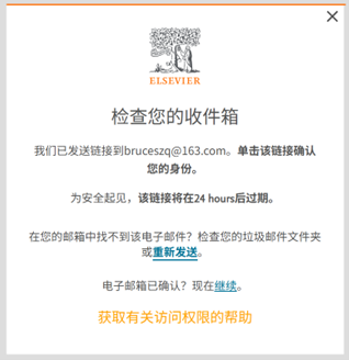 A. 如果您之前已经注册过Elsevier账号:则会自动跳到登陆页面,按指示登陆。如果需要验证链接激活,请在邮箱中查看相关链接邮件;如果收件箱中没有,请查找垃圾箱或广告邮件自动存放的位置。*